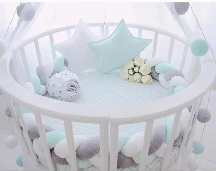 В продаже есть круглые кроватки, представляющие необычную конструкцию, которая не приестся в силу многообразия вариантов трансформации: от колыбели до дивана или креслица со столом.