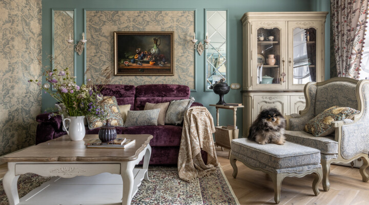 Пастельные краски в интерьере с присутствием мелких фарфоровых деталей, помогают создать уютную атмосферу Франции.